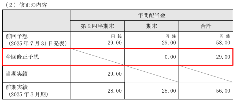 期末配当はTOB成立を条件に無配となる予定です。TOBが不成立となった場合は、配当が再度検討される可能性があります。