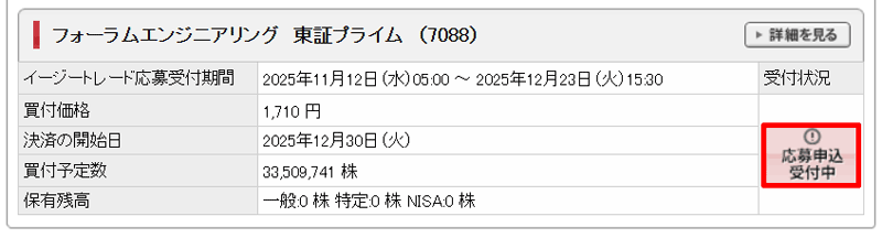 具体的には、フォーラムエンジニアリングの株式を保有している証券会社から、SMBC日興証券へ移管し、応募手続きを行う必要があります。SMBC日興証券で売却するときの手数料は無料です。