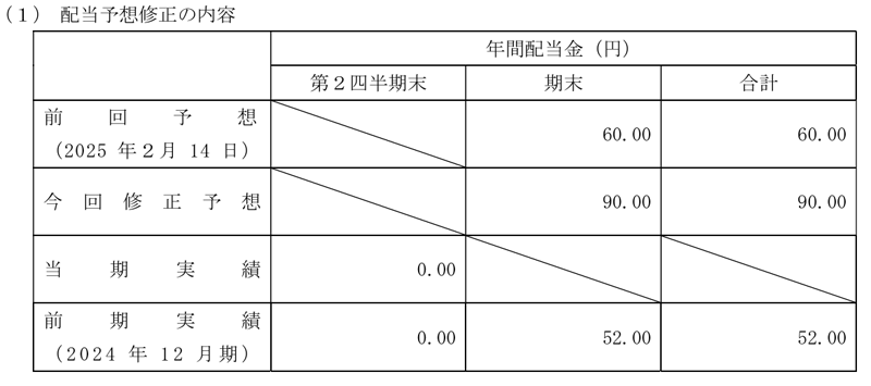 2025年12月期の期末配当は株式分割前の株数に基づき、1株あたり90円を予定しています。