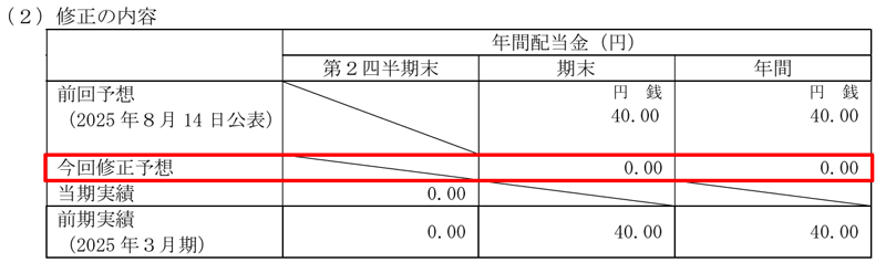 2026年3月期の期末配当については、TOB成立を条件に無配となる予定です。TOBが不成立となった場合は、配当が再度検討される可能性があります。