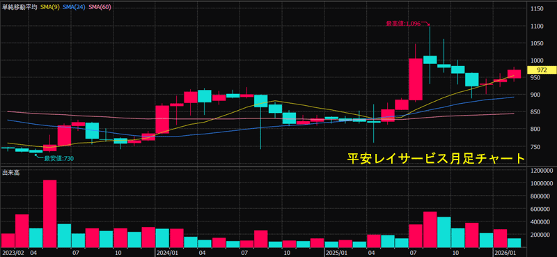 買取価格が2025年8月の高値である1,096円を上回るため、株主は含み益がある状況です。平安レイサービスの上場廃止が決定すれば、株主の損益も最終的に確定します。