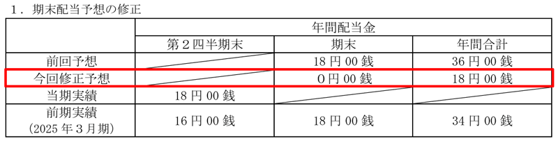 2026年3月期の期末配当は、株式併合が成立することを条件に無配となる予定です。